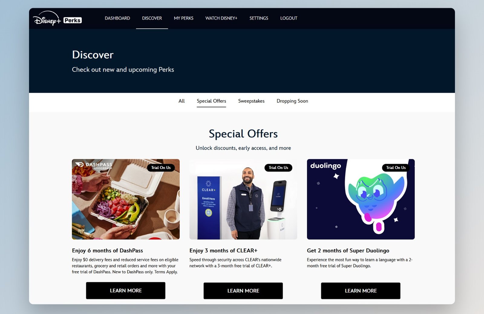 Part of what Disney is offering is just a set of free trials to other services. Those include six months of DoorDash’s DashPass, three months of Clear+, and two months of Super Duolingo.