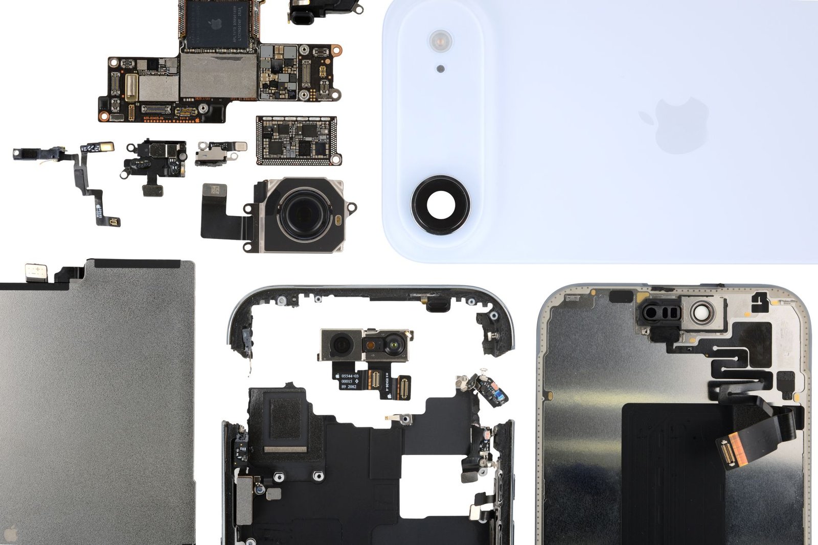 Inside, though, it packs the upgraded C1X modem, a new N1 WiFi chip, and the A19 Pro system-on-chip, all tucked into the logic board sandwich. It’s a lean, efficient setup that makes the most of limited space. This reduced complexity also contributes to quicker disassembly—fewer features, fewer parts, and fewer points of failure.