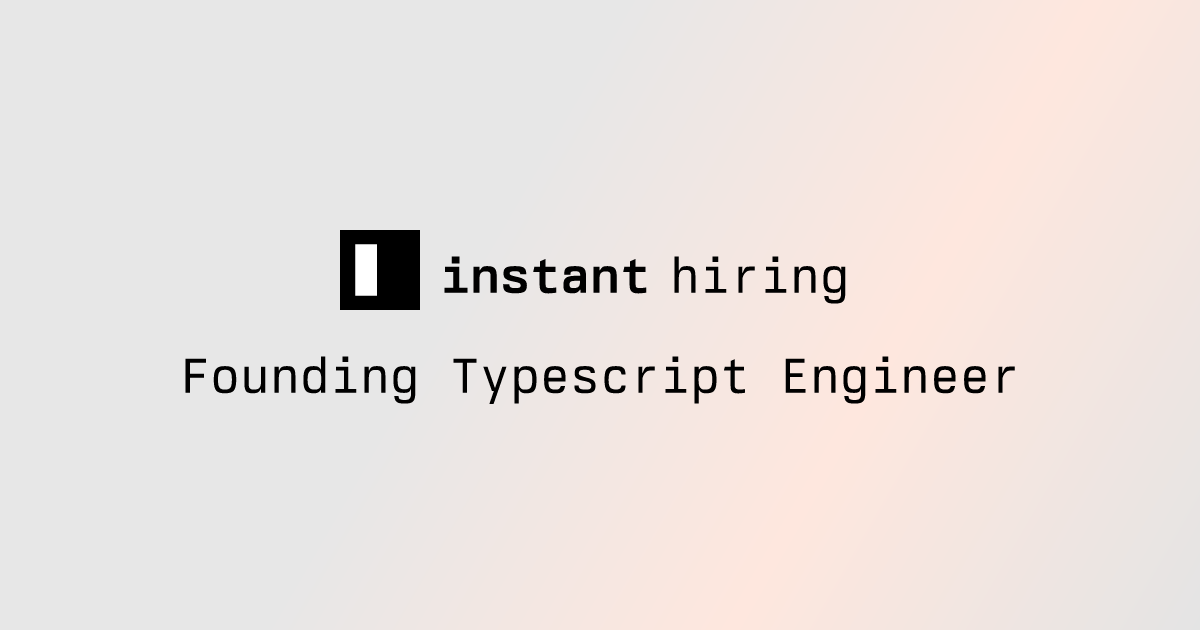 If you’ve read this far and are excited, we should really talk 🙂. Send us an email: founders@instantdb.com with a bit about yourself, and a project you’ve worked on. If you’ve built a Typescript library, that’s a big plus, but not required.