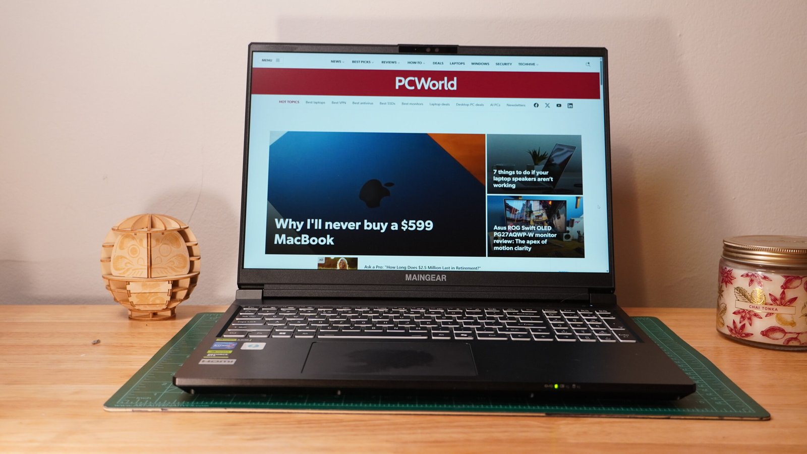 The Maingear Super 16’s display is great, but doesn’t quite hit the bar for superb. It’s a bright, easy-to-see IPS panel that hit 547 nits in our testing, and thanks to its matte finish, it’s easily viewable even at far dimmer levels.