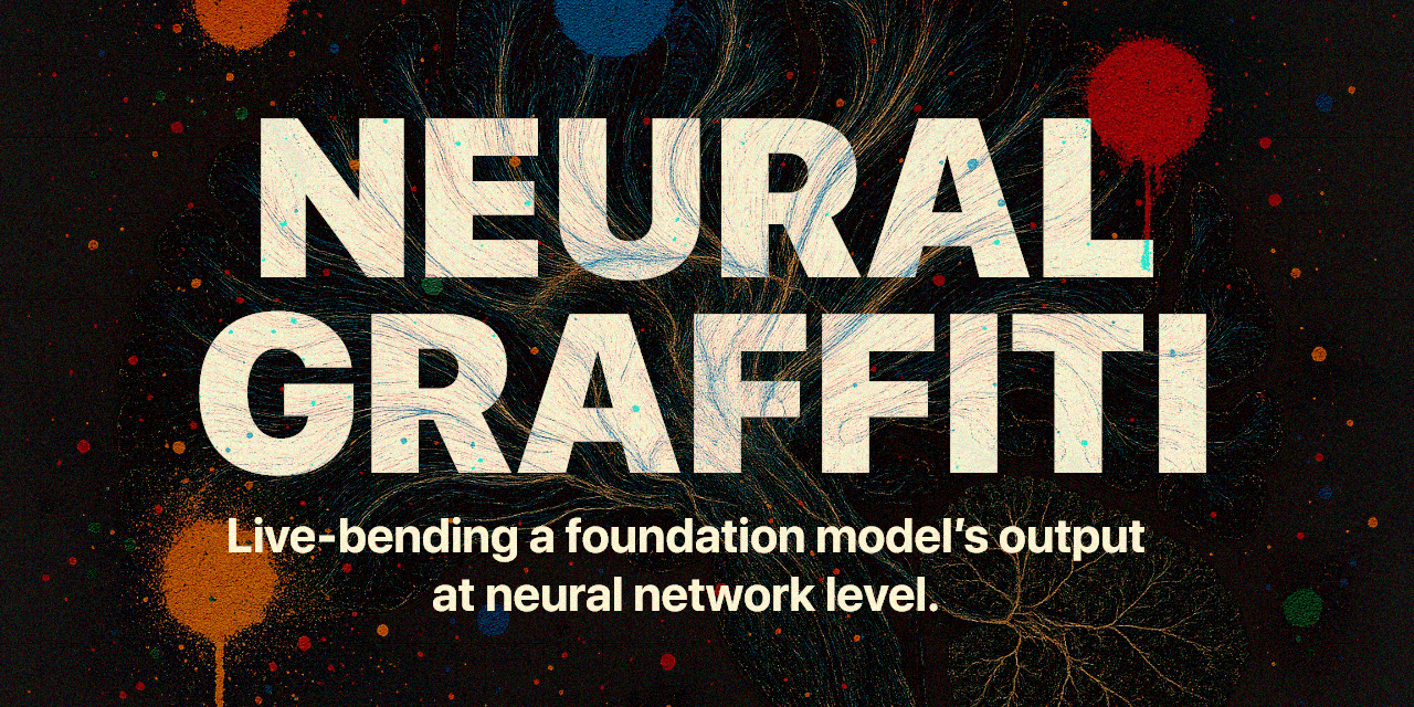 Neural Graffiting is an experimental technique that modulate the way a pre-trained model behave by injecting memory, opinions and other information directly into the vector embeddings, altering the generative token predictions. This influences not only the output but the entire line of “thinking” of the model – changing how it relates words and concepts on its mind over time.