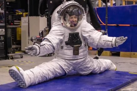 “The AxEMU provides mobility never seen before,” Axiom Space says in a comment about the video. To ram home the point, the company includes a photo of someone doing the splits in the new spacesuit.