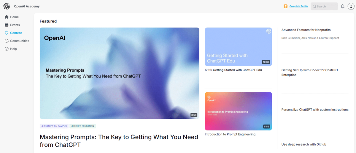 Here’s a quick look at what you can learn at the OpenAI Academy: